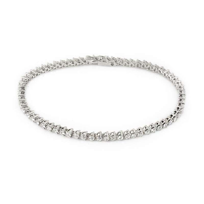 An 18k white gold diamond line bracelet. The bracelet is composed of 66 round brilliant cut diamonds, each individually claw set totalling approximately 2.24ct, predominantly H in colour and SI clarity. The bracelet measures 7 inches in length and has a gross weight of 10.12 grams.