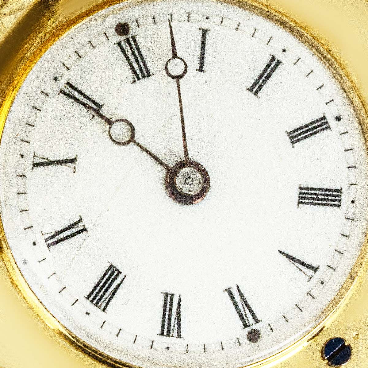 Dial: The super white enamel dial with Roman numerals outer minute track with fine original blue steel Breguet moon hands. The dial is surrounded with a heart shape gold border.