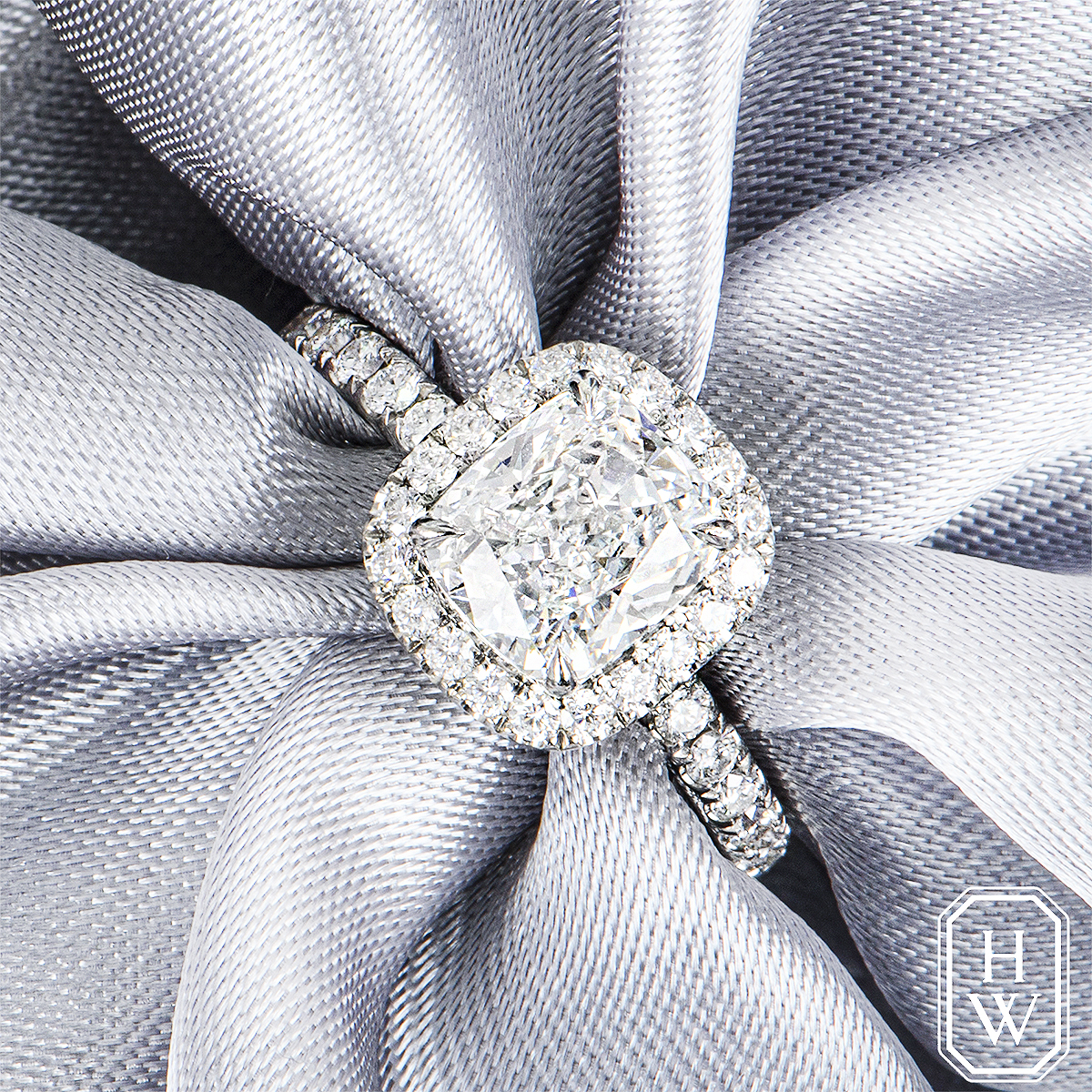 An extraordinary platinum diamond engagement ring by Cartier. The ring is set to the centre with an emerald cut diamond weighing 4.12ct, E colour and VVS2 clarity. Complimenting the central diamond are 18 baguette cut diamond set shoulders along with 2 on the mount with a total weight of approximately 2.96ct, well matched in colour and clarity. The ring tapers down from 10.8mm wide to 6.2mm, is a size 50 and has a gross weight of 8.34 grams.
