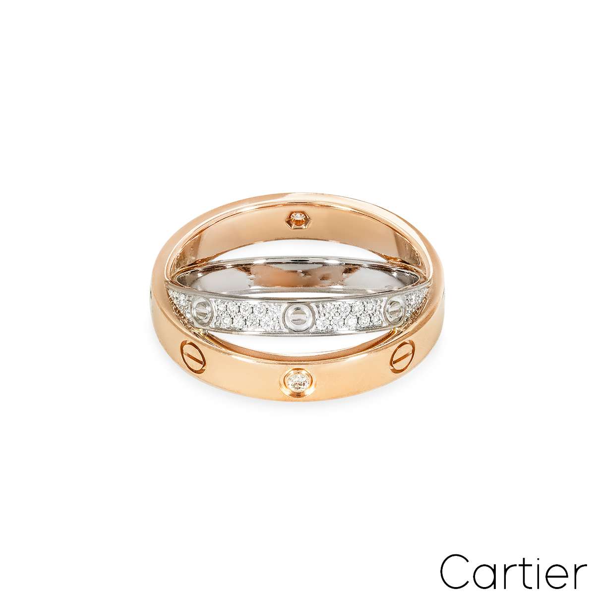 Cartier Rose & White Gold Double Pave Love Ring Size 53 B4094300