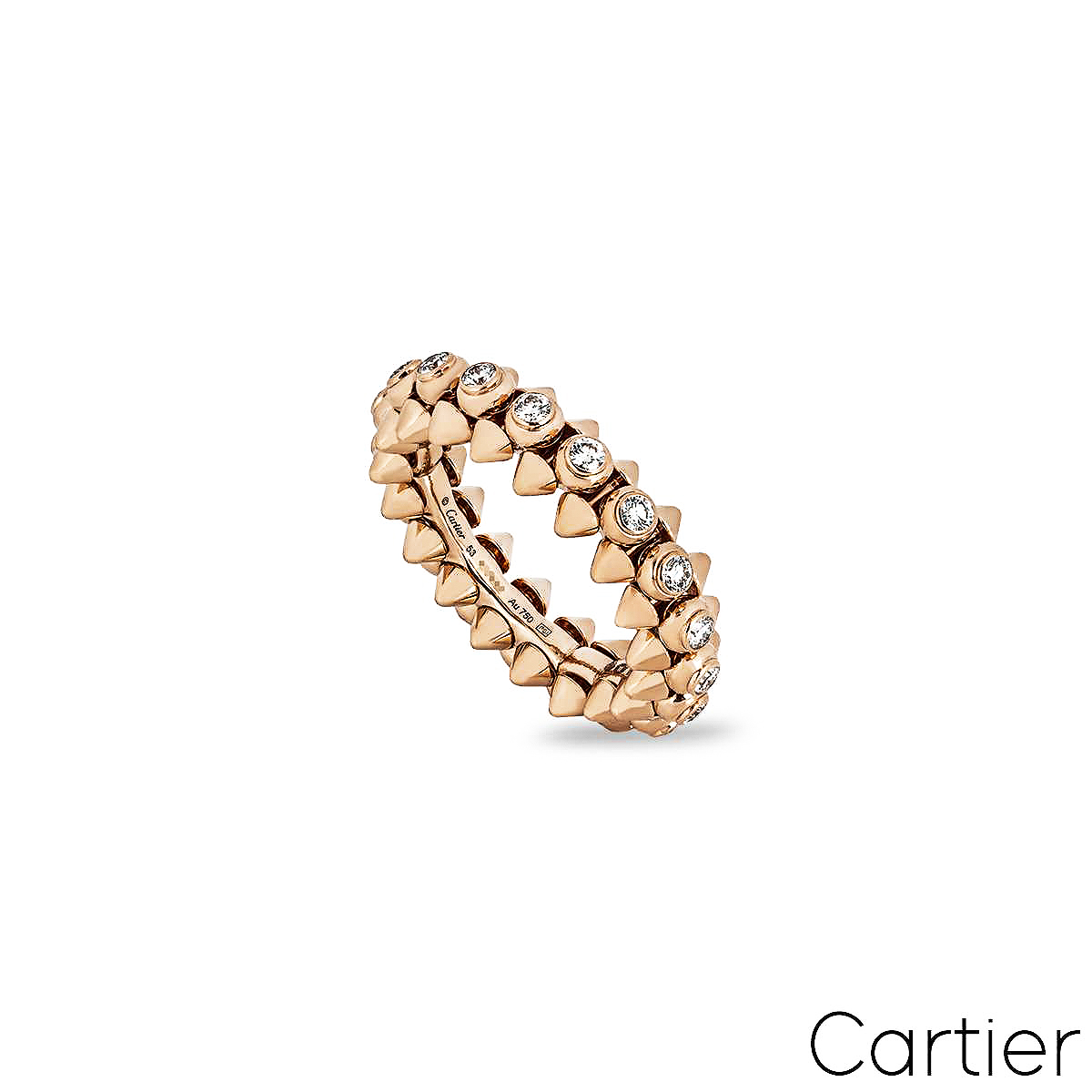 An 18k rose gold ring from Cartier's Clash de Cartier collection. This smaller model (SM) of the classic Clash ring features the iconic studded style centre band which is complemented by smaller studs all the way round. Weighing 7.9 grams, the ring is a size 48 and measures 6.4mm in width.