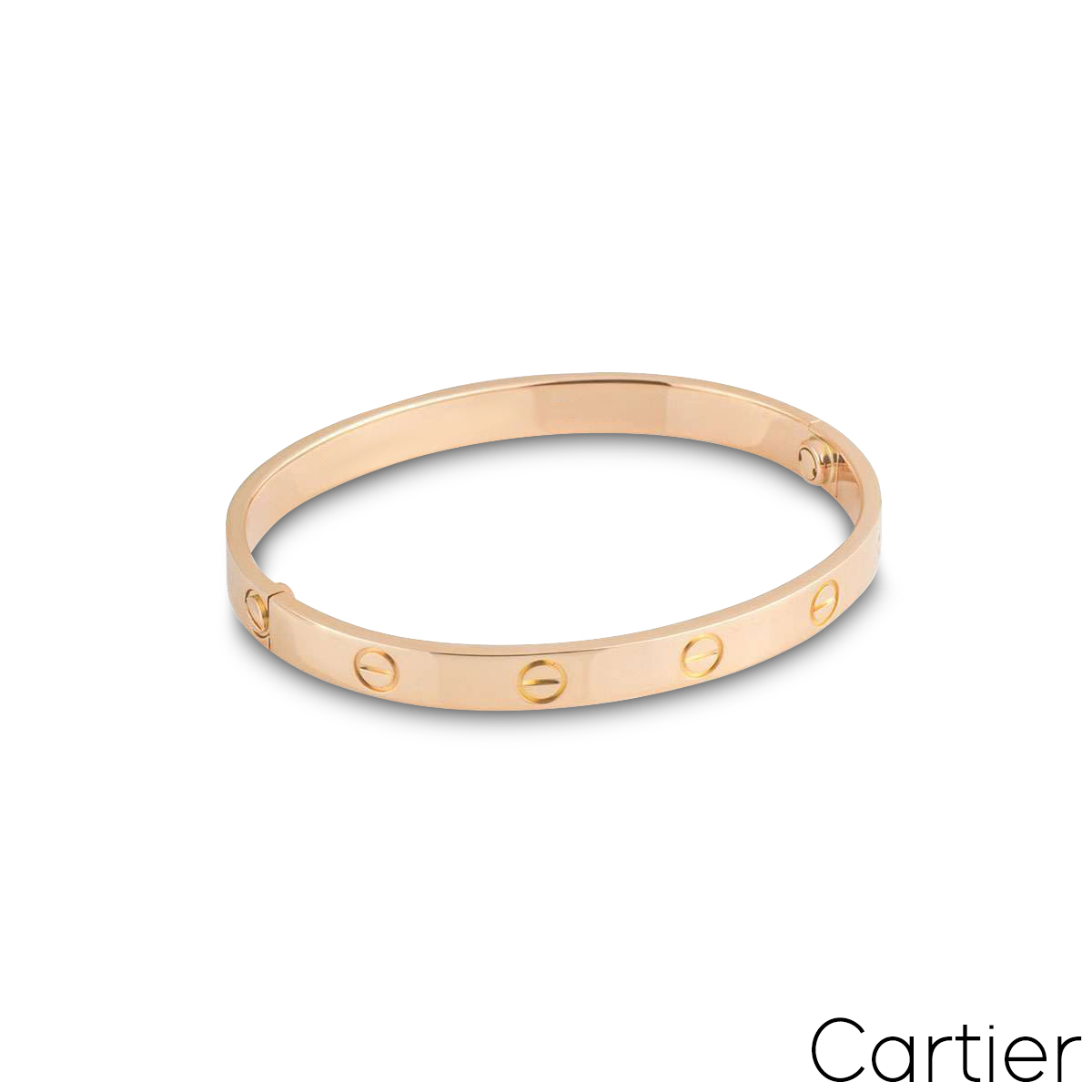 An 18k rose gold bracelet by Cartier from the Love collection. The bracelet comprises of the screw motifs around the outer edge. The bracelet is a size 17 and features the new style screw system with a gross weight of 30.5 grams.