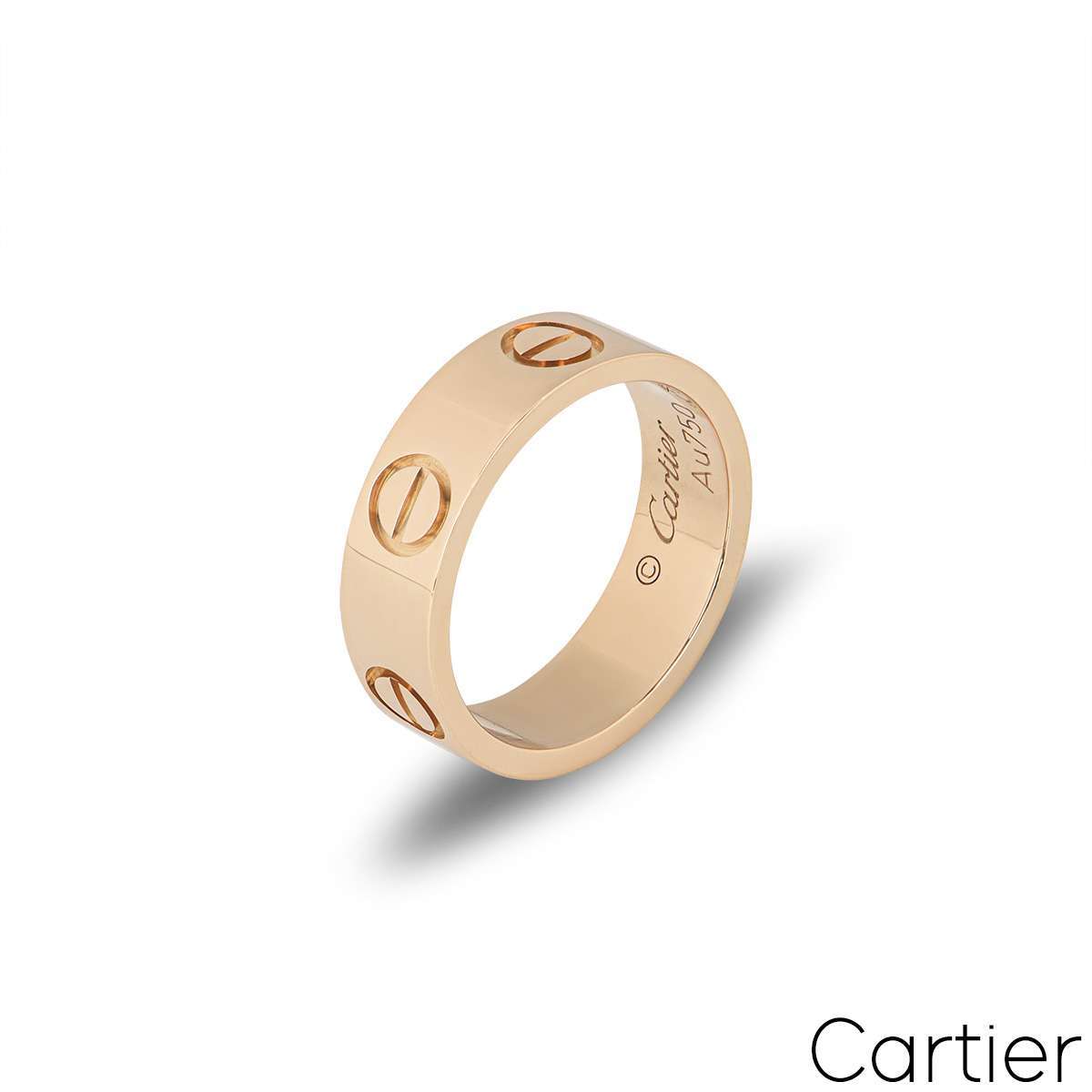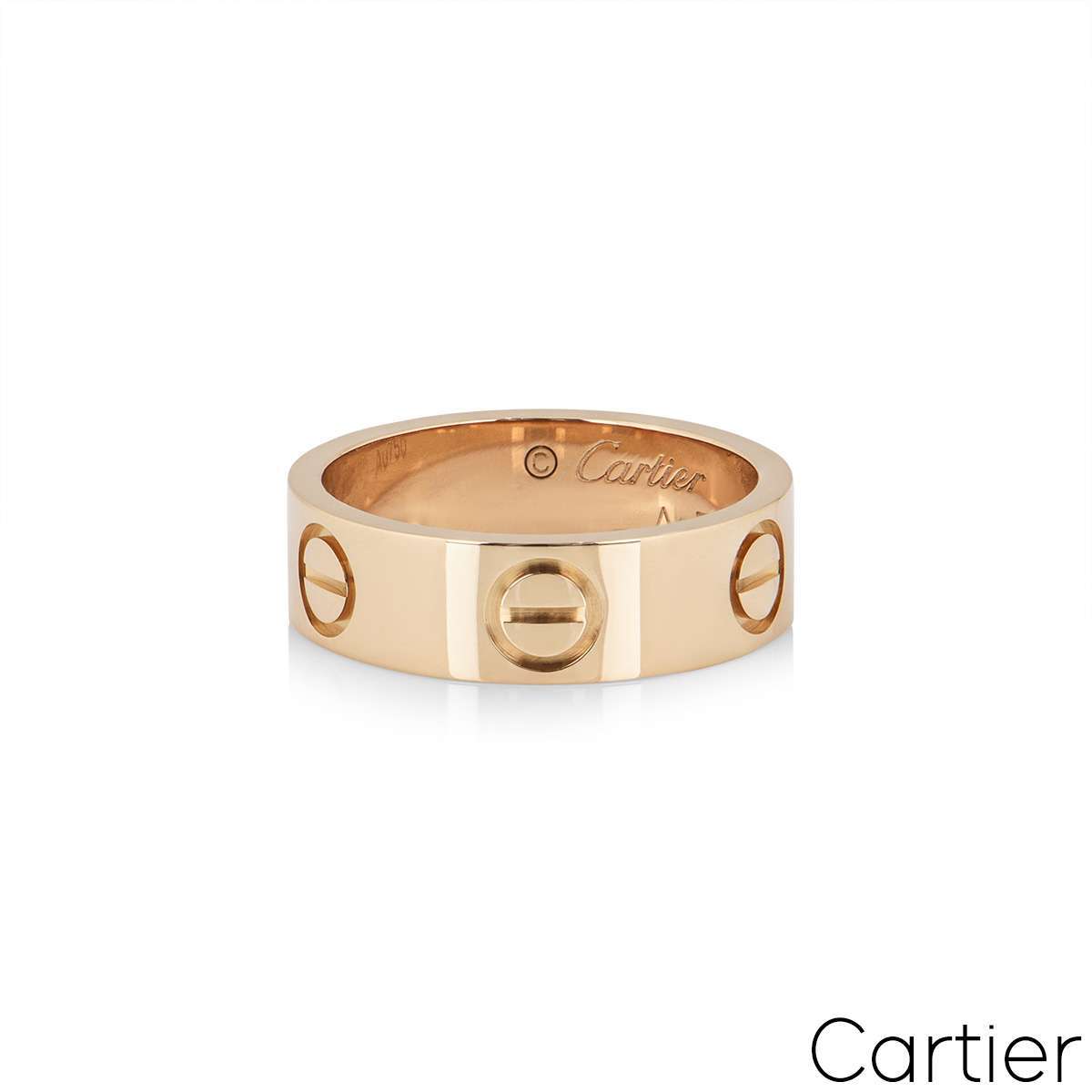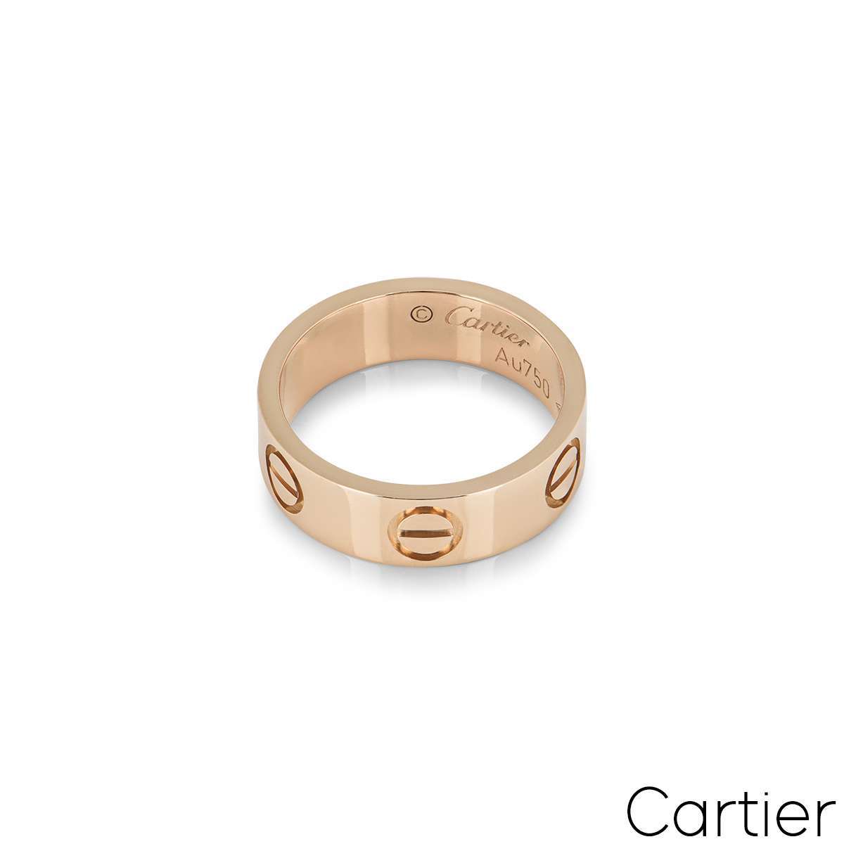 A classic 18k rose gold Cartier ring from the Love collection. The ring comprises of the iconic screw motifs on the outer edge. The ring measures 5.5mm in width, is a size 59 and has a gross weight of 6.10 grams.