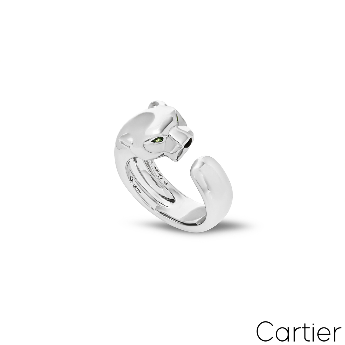 An 18k white gold diamond ring by Cartier from the Juste un Clou collection. The ring is in the style of a nail and has 22 round brilliant cut diamonds set in the head and tip with a total weight of 0.13ct. A size 52, the ring has a gross weight of 7.3 grams.