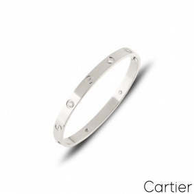 Cartier White Gold Full Diamond Love Bracelet Size 16 B6040716