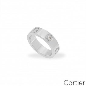 An iconic 18k white gold Cartier diamond bracelet from the Love collection. The bracelet comprises of the iconic screw motifs alternating with round brilliant cut diamonds. There are 6 round brilliant cut diamond in a rubover setting with an approximate total weight of 0.54ct. The bracelet is a size 19 and features the old style screw fittings and has a gross weight of 30.02 grams.