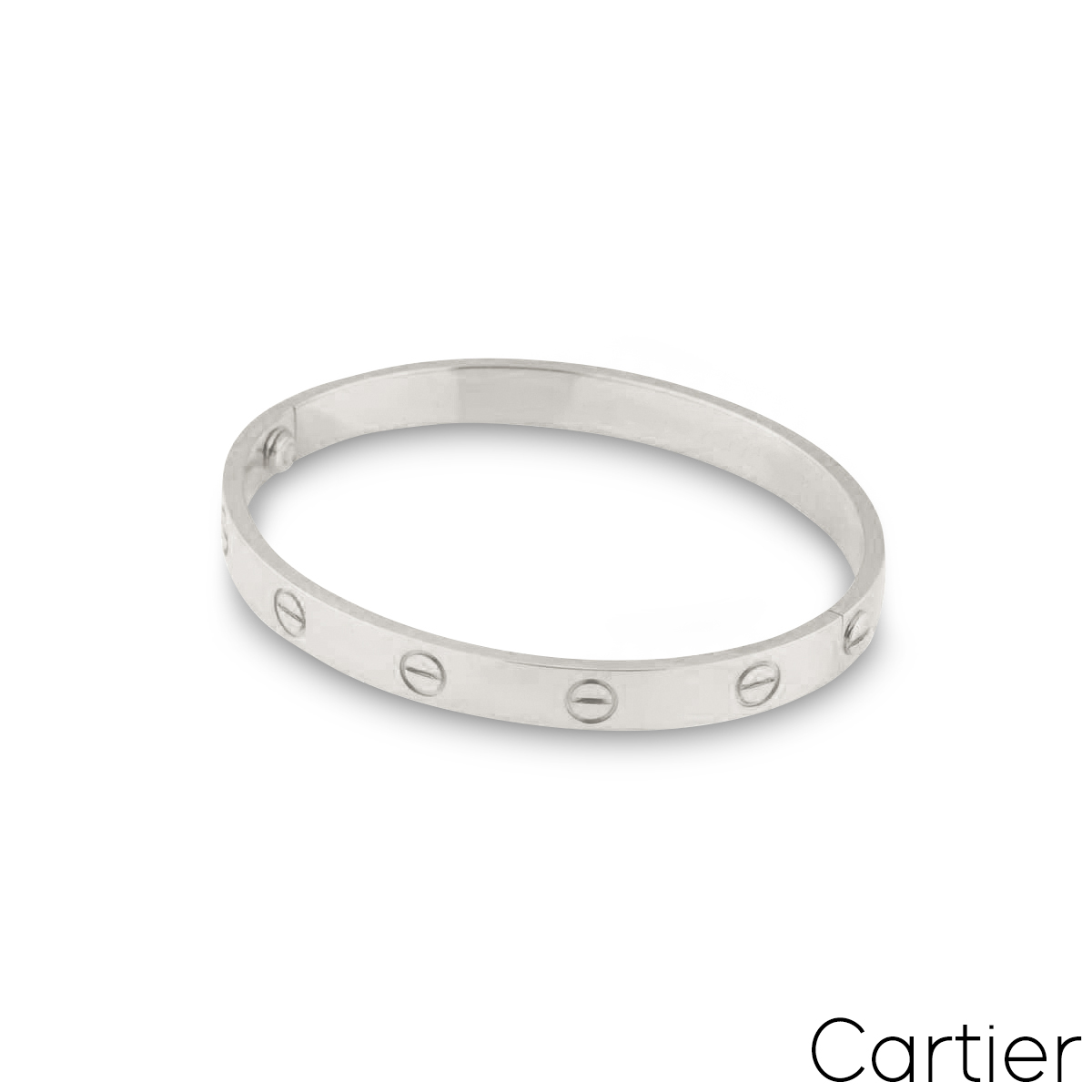 Cartier White Gold Plain Love Bracelet Size 18 B6035418