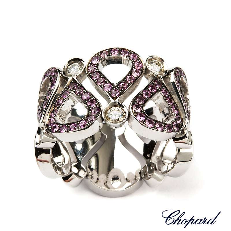 Show her your Love with this Chopard 18ct White Gold Pushkin Ring set with Ruby and Diamond. Size Euro 51, UK L. Chopard Model No. 82/3935-1308