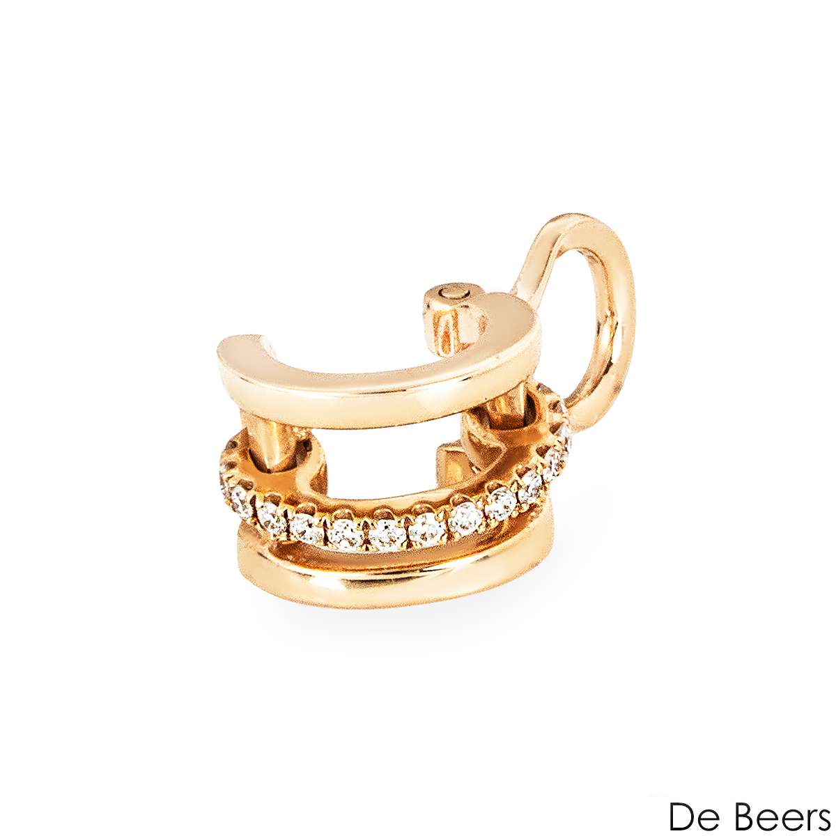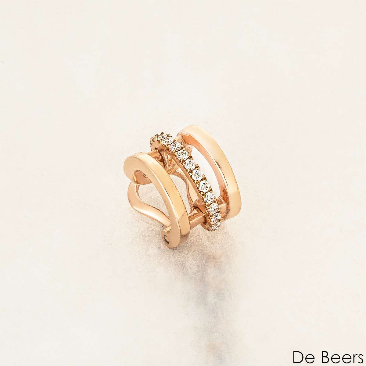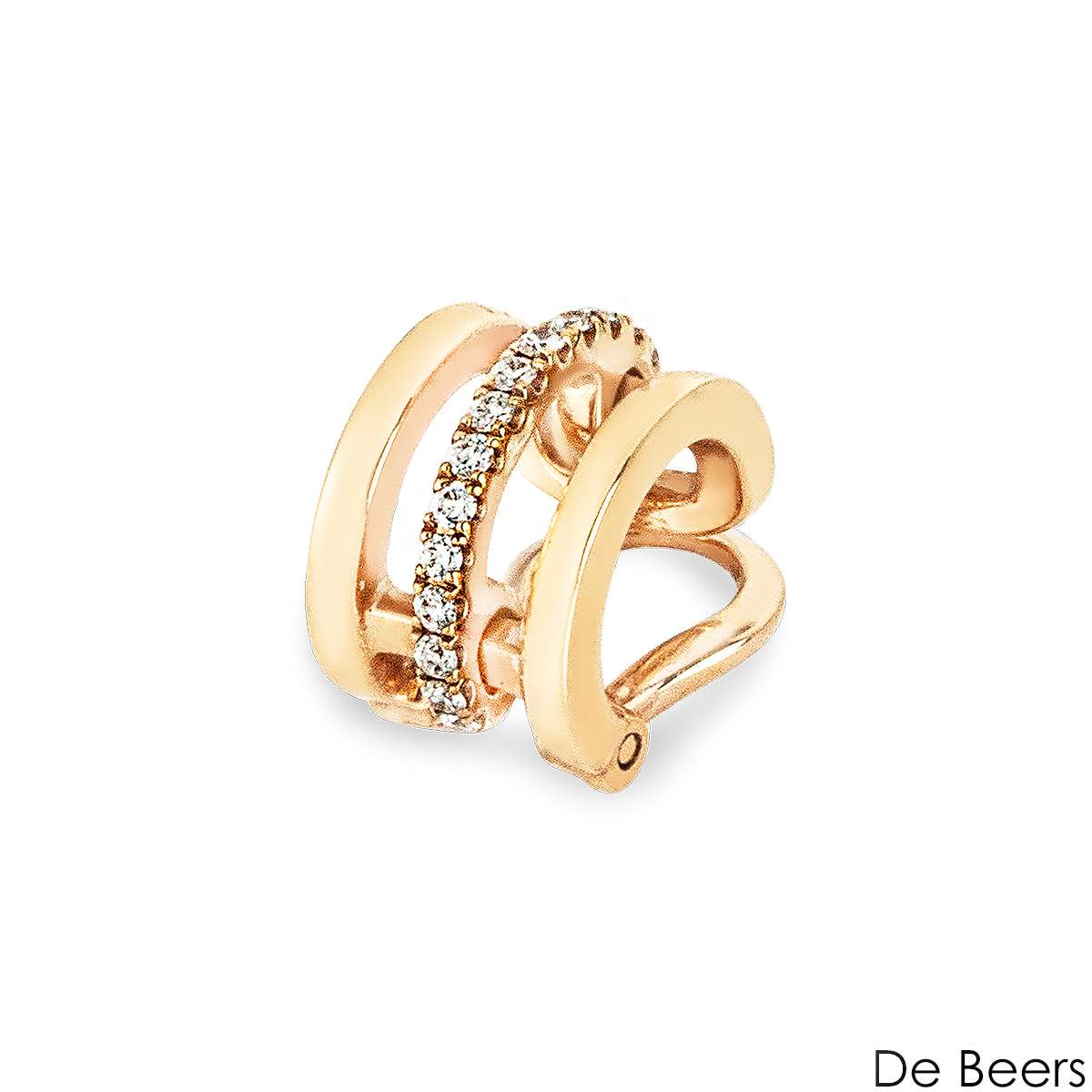A unique 18k rose gold diamond ear cuff by De Beers, from the Horizon collection. The ear cuff is set with micro pave brilliant cut diamonds with a total weight of approximately 0.04ct. The piece has a gross weight of 1.3g and is secured with a discreet clip-on mechanism, making it suitable for both pierced and non-pierced ears.