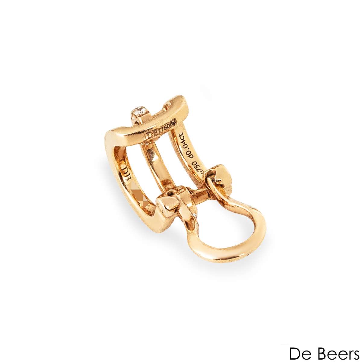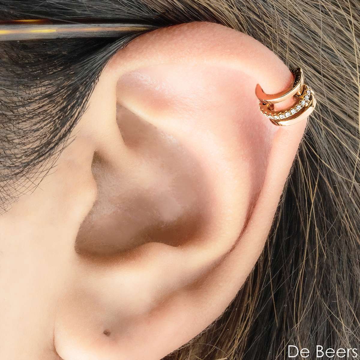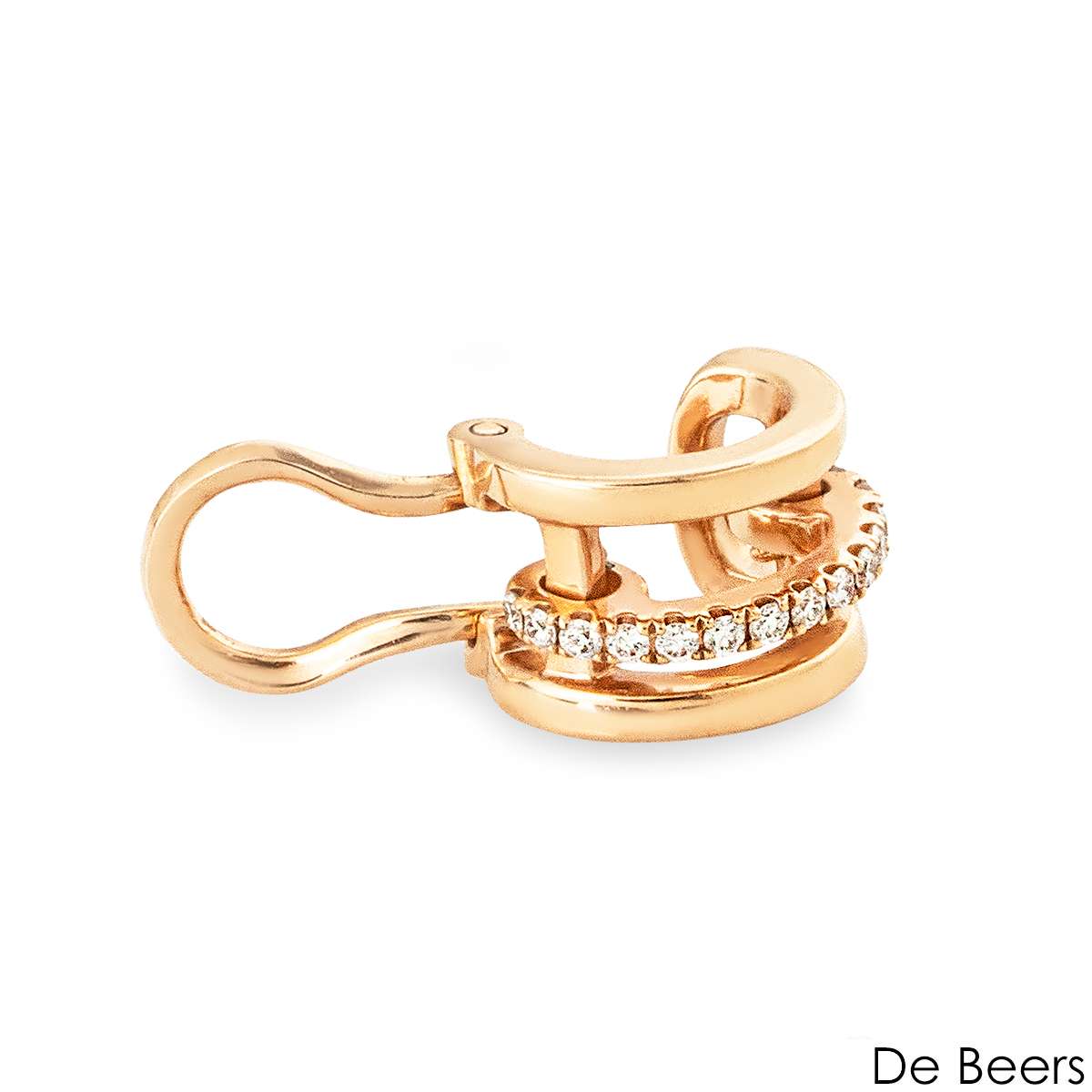 A unique 18k rose gold diamond ear cuff by De Beers, from the Horizon collection. The ear cuff is set with micro pave brilliant cut diamonds with a total weight of approximately 0.04ct. The piece has a gross weight of 1.3g and is secured with a discreet clip-on mechanism, making it suitable for both pierced and non-pierced ears.