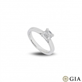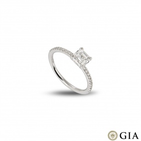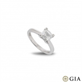An elegant asscher cut diamond engagement ring set in platinum. The solitaire features a kite set asscher cut diamond weighing 1.00ct, G colour and VS2 clarity. The 2mm ring has a gross weight of 3.60 grams and is currently a size M but can be adjusted for a perfect fit.