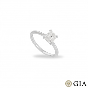 A sparkly platinum diamond engagement ring. The solitaire features a slight twist design set with a round brilliant cut diamond in a six prong mount weighing 1.08ct, I colour and SI2 clarity. The ring tapers from 1.25mm to 2.20mm wide, has a gross weight of 4.09 grams and is currently a size L½ but can be adjusted for the perfect fit.