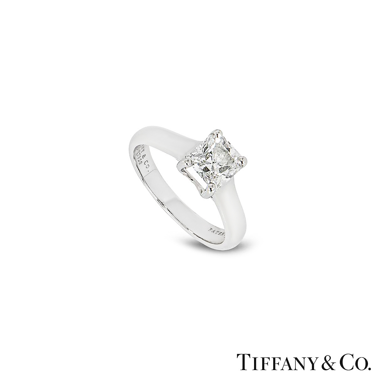 A beautiful platinum diamond ring by Tiffany & Co. from The Setting collection. The ring comprises of a round brilliant cut diamond in a 6 claw setting with a weight of 1.14ct, H colour and VVS1 clarity. The knife edge ring tapers down from 3mm to 2mm, has a gross weight of 4.63 grams and is currently a size M½ but can be adjusted for a perfect fit.