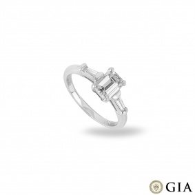 A beautiful 18k white gold emerald cut diamond engagement ring. The ring features an emerald cut diamond set to the centre weighing 1.12ct, F colour and VVS2 clarity. Further complementing the centre diamond are 8 princess cut diamonds channel set to either side with an approximate total weight of 0.16ct, G-H in colour and VS clarity. The 2mm ring has a gross weight of 3.55 grams and is currently a size M but can be adjusted for the perfect fit.