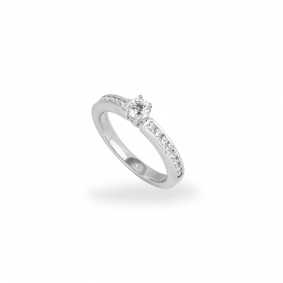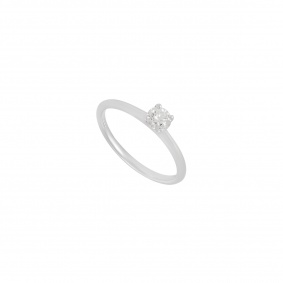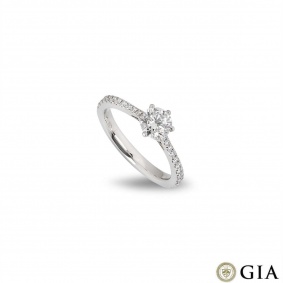 An elegant 18k white gold diamond single stone solitaire ring. The ring is set to the centre with a 0.30ct round brilliant cut diamond, E colour and VS1 clarity and scores an excellent rating in cut, polish and symmetry - this is known as a triple excellent diamond. The 3mm ring is currently a size N but can be adjusted for a perfect fit and has a gross weight of 4.33 grams.