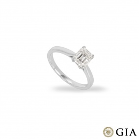 A captivating 18k yellow gold diamond engagement ring. The solitaire features an emerald cut diamond weighing 0.83ct, E colour and VS1 clarity. The diamond is set in a four prong mount on a classic 2mm band, has a gross weight of 3.16 grams and is currently a size M½ but can be adjusted for the perfect fit.